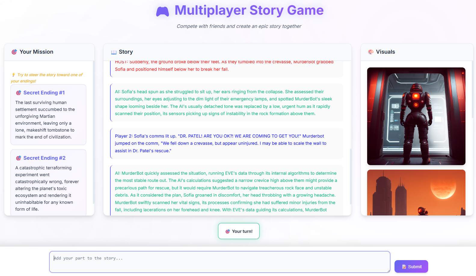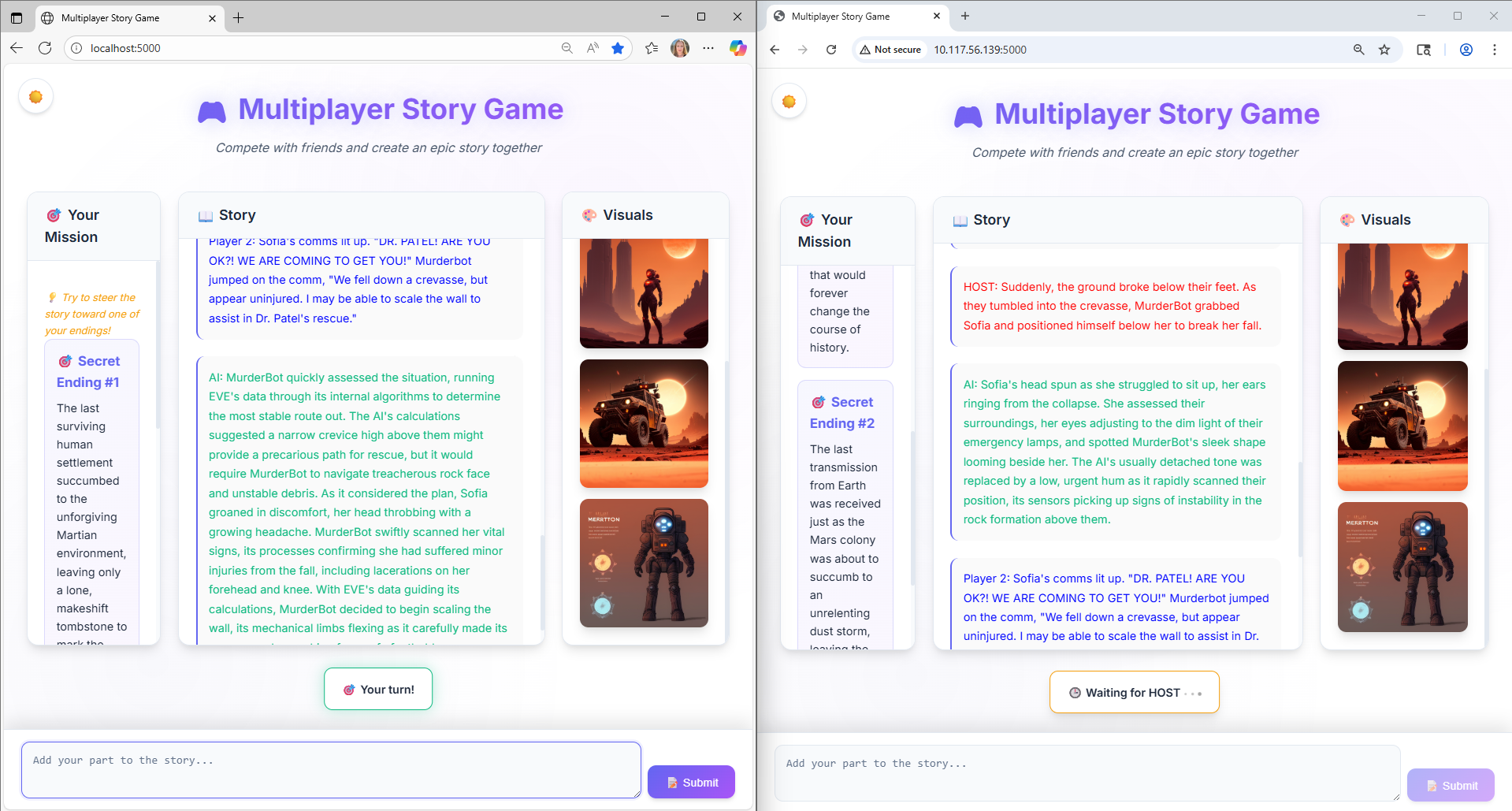 Built a real-time multiplayer storytelling game using Flask, JavaScript, and Socket.IO. Implemented UI logic, LLM output handling, and a goal-based win condition where players steer the narrative toward secret, personalized endings evaluated by the LLM.